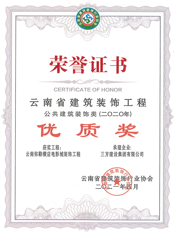 2020年云南省建筑装饰工程公共建筑装饰类优质奖
