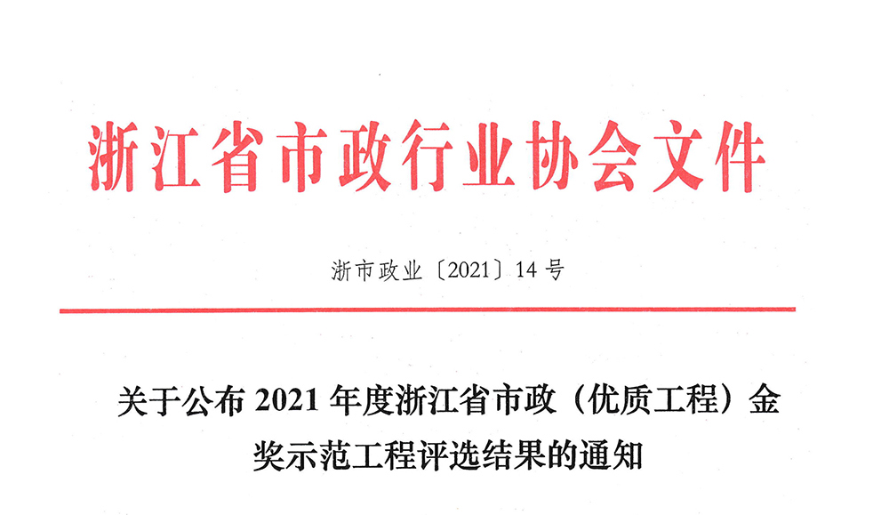 恭喜集团康桥路至上塘路节点提升工程荣获 浙江省市政金奖示范工程