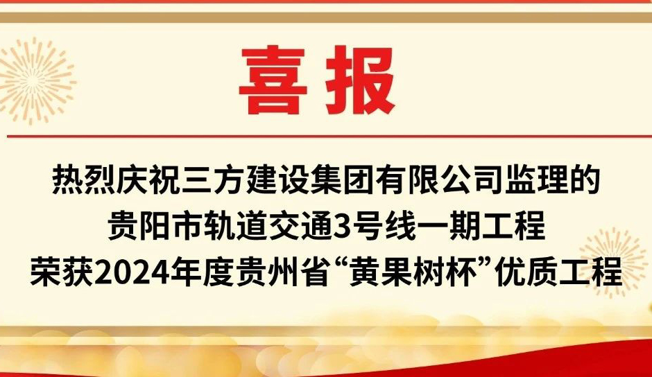 喜报|集团监理的贵阳市轨道交通3号线一期工程荣获2024年度贵州省“黄果树杯”优质工程