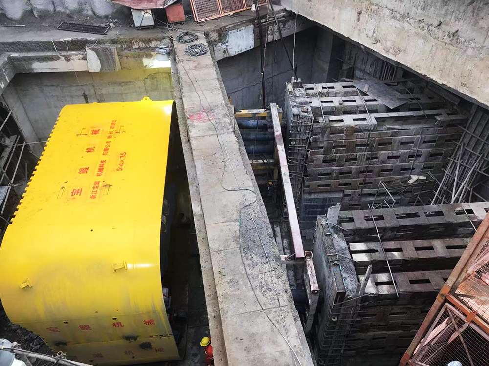 古墩路地下通道工程位于杭州市西湖区古墩路沿线,连接古墩路地铁站和西溪谷蚂蚁金服总部大楼。项目施工方在珀莱雅以西绿地设始发井,以西溪路南侧绿地为接收井。此段通道总长36米,共24节,采用大断面矩形顶管施工,该顶管截面尺寸7.5米×5.4米,截面尺寸为杭州市区最大,仅单节管节就重达45吨。