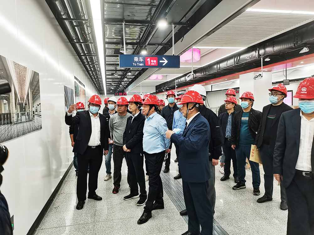 在凤林站,陈澄书记一行现场踏看了车站公共区站厅、站台的装修展示效果,听取了京越公司领导有关1号线全线公共区装修整体方案的汇报,对全线设计方案给予充分肯定,并就绍兴地铁1号线下一阶段工作推进提出了具体要求。