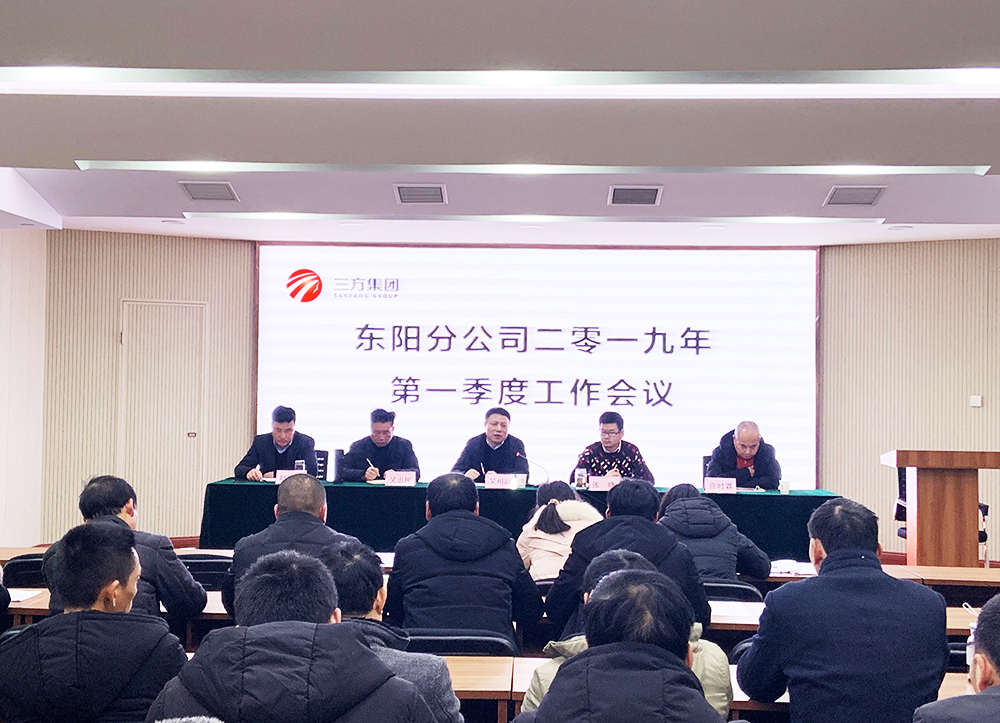 2019年2月15日,三方集团东阳分公司二零一九年第一季度工作会议在分公司会议室召开。本次会议由分公司总经理张晓主持,集团董事长吴祖跃、顾问徐时霖、各项目负责人等分公司全体员工共计80人参加。