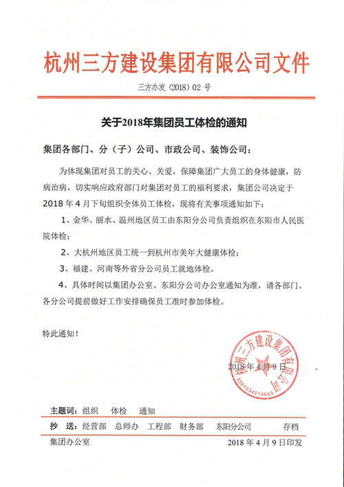 关于2018年集团员工体检通知