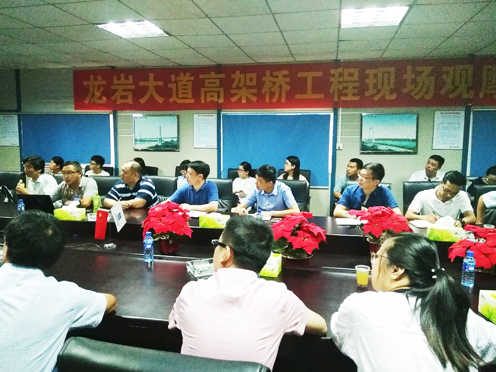 2016年7月16日,集团在龙岩大道高架桥现场召开了观摩会,与会人员深入现场了解岩溶地区大型城市桥梁的建设过程,顶推、转体独塔斜拉桥施工工艺,受到了一次良好的桥梁知识教育。集团领导、各子公司、分公司及项目负责人共50多人参加了会议。