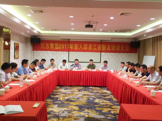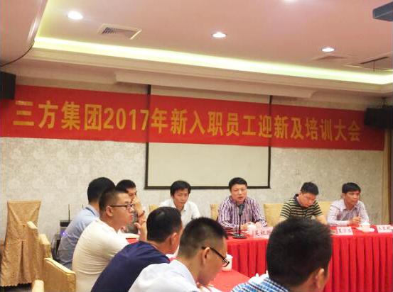 2017年5月13日下午,杭州华体会官方网页版在杭州新街坊大酒店召开“三方集团2017年新入职员工迎新及培训大会”。会上,各位新员工依次作自我介绍,接着由董事长吴祖跃介绍集团组织机构及集团各位领导。会中,由董事长吴祖跃介绍集团成立初衷,发展历程及发展方向,着重就集团《管理手册》中的企业文化、员工礼仪,员工离职制度、培训制度、廉政制度、问责制度以及各项福利等。最后,董事长吴祖跃向新员工提出几点要求,一要求全体员工以公司为家,努力学习技术知识,学习做人做事,忠于公司;二要严格执行集团“标准化管理”,提升个人层次;三在工作中,有任何困难、要求、问题,都及时提出,便于沟通,及时解决。