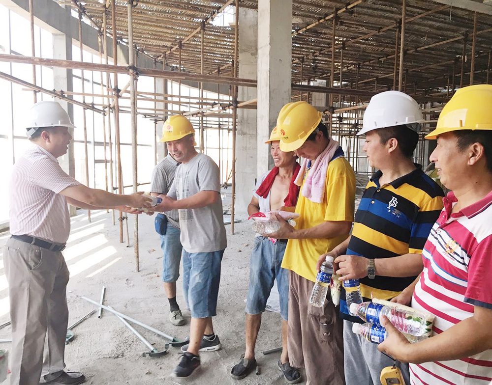 在慰问中,集团领导详细了解了项目上员工在高温天气下的工作、生活情况,了解员工工作和生活上存在的困难,并提出了相应的解决方案。慰问的同时,察看了现场作业的安全、文明施工落实情况。各位领导对大家在高温中坚守岗位表示感谢,并反复叮嘱在场的项目部负责人,要根据夏季施工特点强化安全意识,在抓质量、抓安全的同时,更要关爱高温下坚持工作的员工的身心健康,要合理、科学地安排工作时间,建立错时工作制,切实做好防暑、防疫措施,加强工程的安全、质量管理,努力提高现场安全文明施工水平,确保一线人员度过一个安全、卫生、清凉的夏季,确保集团在建工程项目安全有序推进。