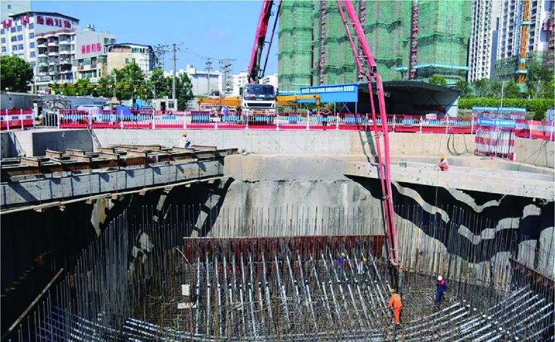 11月1日,完成下转盘混凝土浇筑施工。下转盘高0.8m,采用C50泵送商品混凝土。