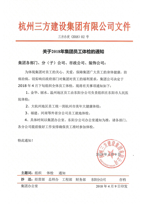 《关于2018年集团员工体检的通知》