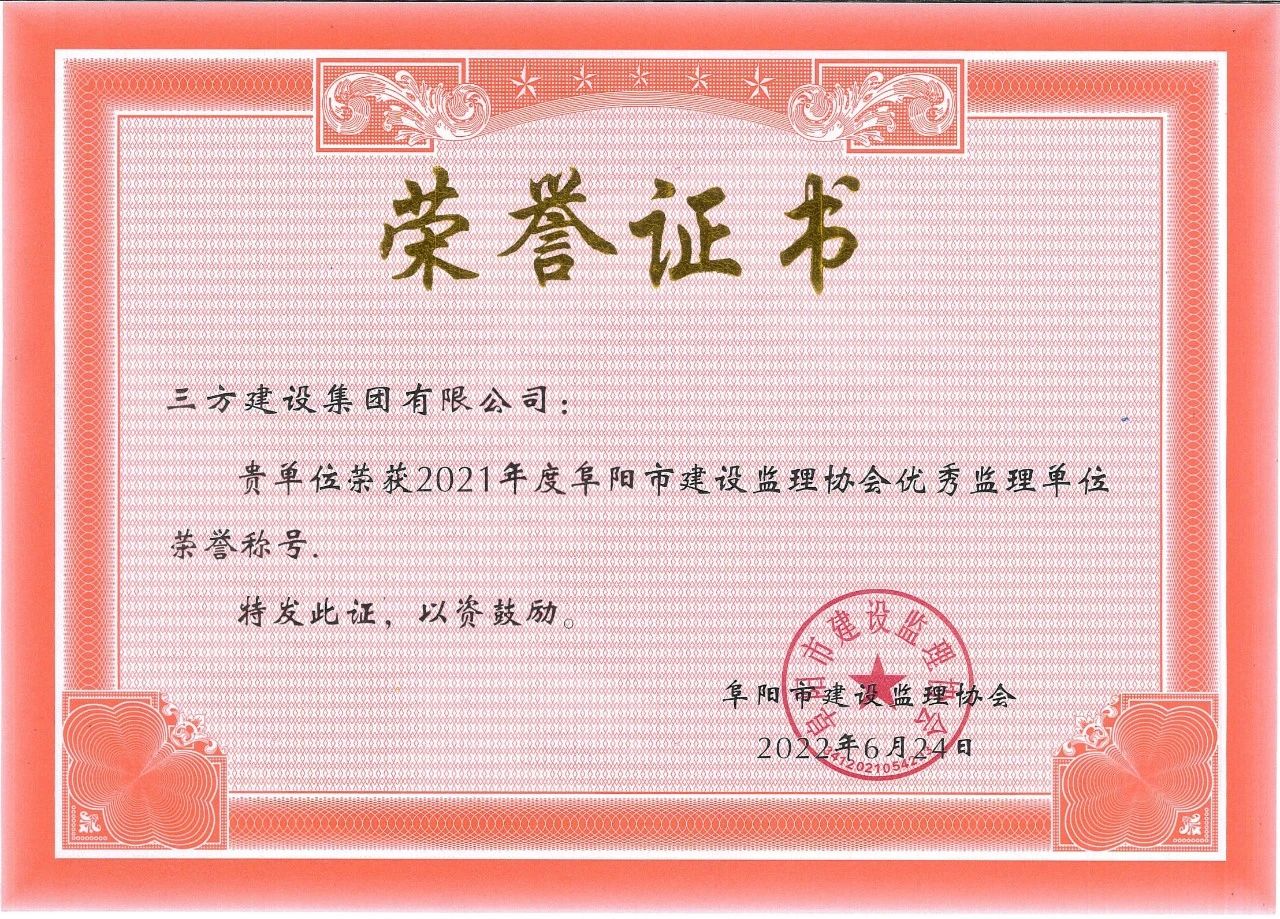 ●6月24日,集团荣获阜阳市2021年度优秀监理单位。