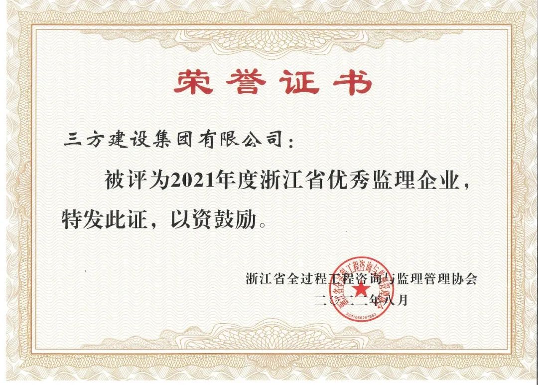 ●集团荣获2021年度浙江省优秀监理企业