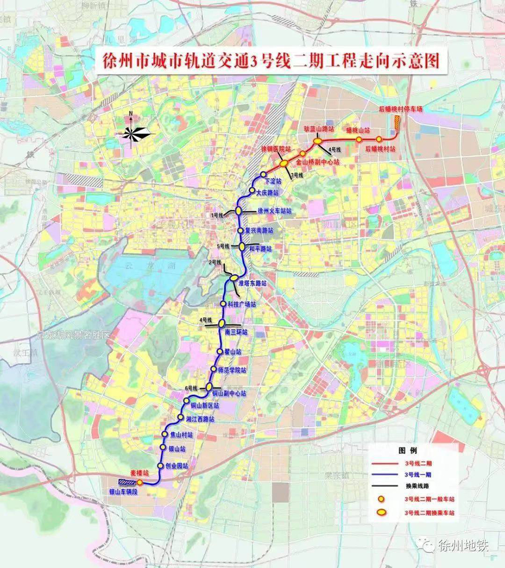 徐州市轨道交通3号线二期工程全线线路长约6.5km,分南北两段,共设6座车站:换乘车站2座,平均站间距为1.3公里,最大站间距2074米,最小站间距885 米。设后蟠桃村停车场1座。主变电所利用一期工程的2座主变电所。控制中心设置于1 号线一期工程一号路站控制中心内。