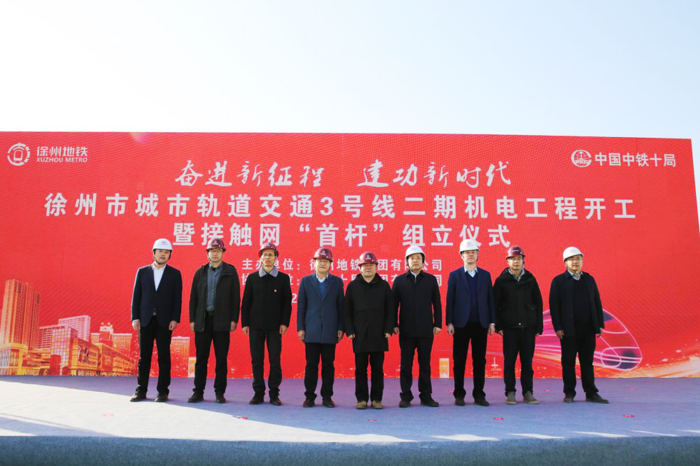 近年来,徐州市积极推进交通运输现代化进程,将建设“轨道上的徐州都市圈”作为重中之重。徐州地铁集团先后完成了地铁1号线、2号线、3号线首轮建设,实现多线组网运行,为提升城市承载力和吸引力、提升淮海经济区中心城市地位按下了“快进键”。接触网“首杆”组立仪式的顺利完成,标志着徐州地铁3号线二期机电工程进入了施工快车道。