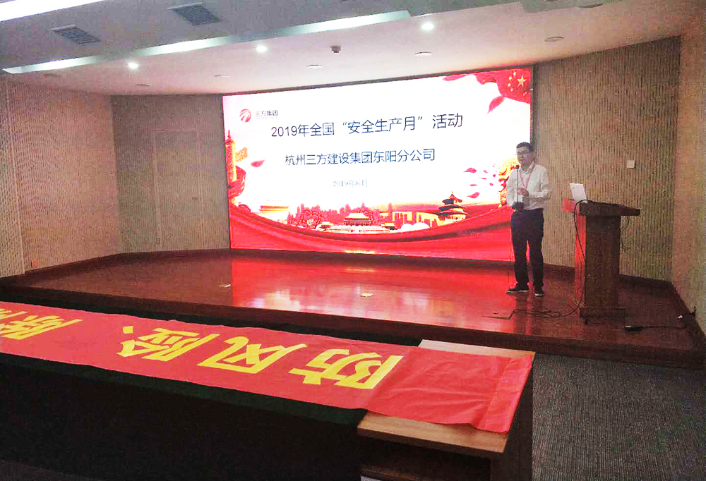 2019年6月13日下午,东阳分公司在多功能厅开展了以“防风险·除隐患·遏事故”为主题的安全生产月活动。本次活动由集团总裁助理、东阳分公司总经理张晓主持,分公司工程部、办公室全体人员及各在建项目监理部全体人员(除值班人员)参加。