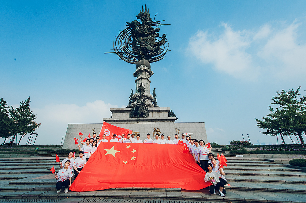 9月30日一早,参加毅行的队员身着统一定制的庆祝新中国70周年文化衫,手持国旗,齐聚在滨江钱江龙广场整装待发。上午8时30分,在巨大的五星红旗旁,全体人员挥舞小国旗,齐声高喊:“祖国,我爱您”,活动在响彻云霄的口号声中拉开序幕。