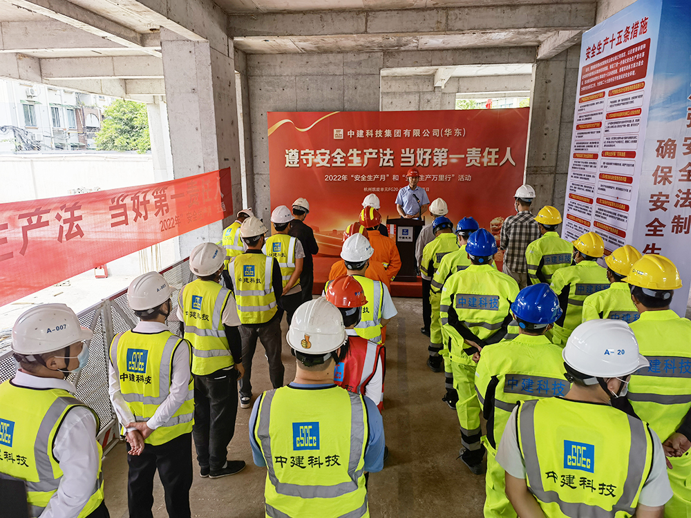 2022年5月31日上午10点,凯旋公租房项目部组织安全生产月启动仪式,建设单位、施工单位、监理单位及现场各班组、工人等全体人员参加。