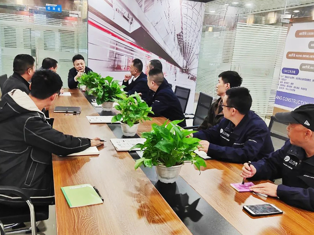 会上,项目负责人吴军荣汇报了当前工程进展情况,就项目推进工作中存在的问题作了详细说明。董事长首先肯定了项目部自成立以来取得的成绩,对新加入三方团队的贵阳本地员工表示欢迎,并对下阶段的工作规划以及贵阳分公司的筹建工作提出了具体意见和布置。他强调,监理项目部负责人要合理做好各施工标段人员的分工安排,落实责任制,打造贵州金名片,同时加快落实分公司成立工作的落实,包括人员配置、资料档案、管理条例等各式工作。会议最后,项目部全体成员表示将加强专业知识学习,提升个人执业能力,做好各自的本职工作,争取圆满完成任务,为集团在贵阳争得荣誉。