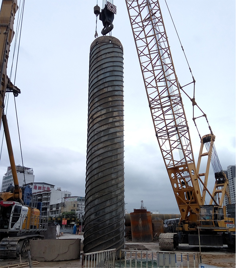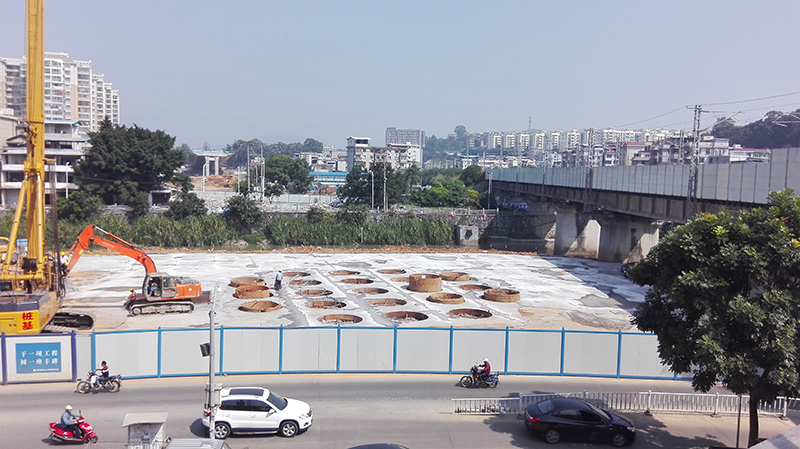 一、分级成孔下钢护筒施工方案。针对溶洞问题,施工单位采用分级成孔下钢护筒施工工艺,有效解决了岩石强度的难题,入岩进度大大加快,从原先的0.7m/天增加至1.2m/天。改进工艺后,钻一天大约相当于以前钻两天。