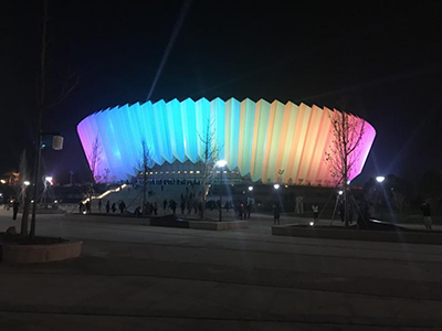 东阳市体育馆是东阳市十大重点工程之一,是金华首个安装中央斗屏的体育馆,项目建筑面积3.7831万平方米,外形如同一朵白莲花,分为地下和地上两部分,其中地上建筑面积2.5万多平方米,地下建筑面积1.2万多平方米,整个场馆成圆形,共有5546个座位。该项目的建成,标志着又一集团监理的地标建筑耸立在东阳江之畔!