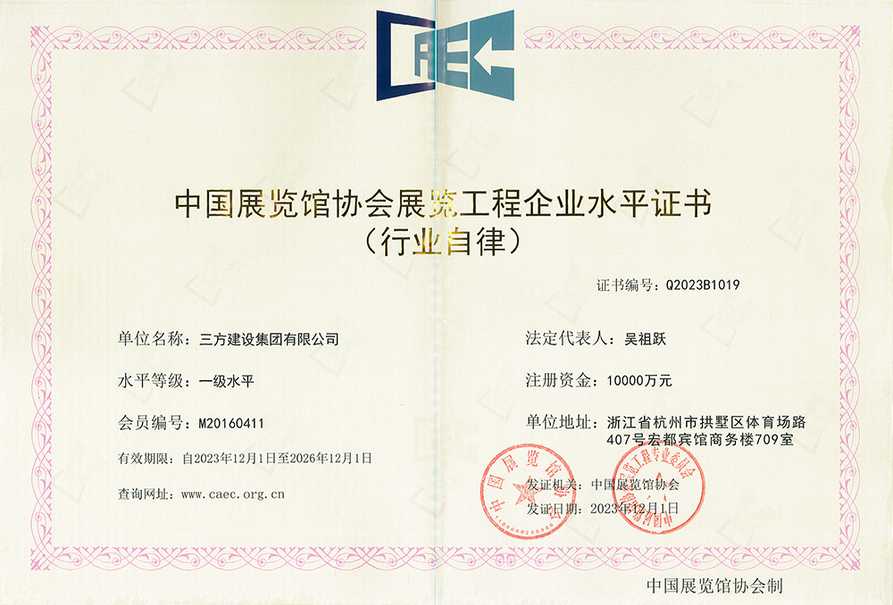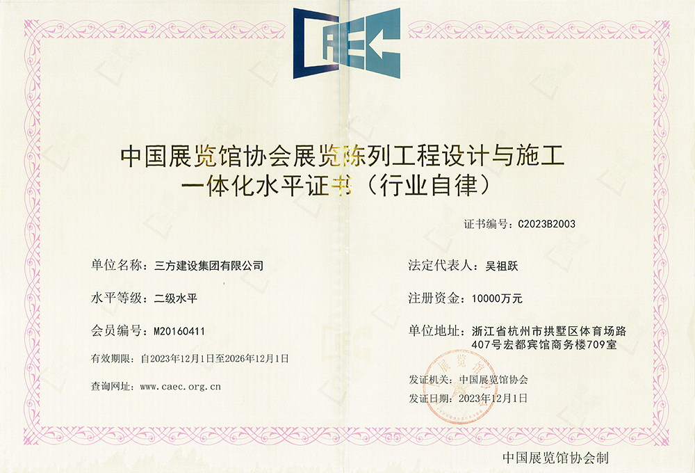 集团现具有监理综合资质、国内唯一民营企业铁路甲级资质、房屋建筑、市政公用工程施工总承包贰级、建筑装修装饰专业承包壹级施工资质、建筑装饰工程设计专项甲级,展览工程一级资质,展览陈列工程设计与施工一体化二级资质,并通过了 ISO9001 质量管理体系、ISO45001 职业健康管理体系、ISO14001 环境管理体系、ISO/IEC27001 信息安全管理体系、GB/T31950 诚信管理体系认证。